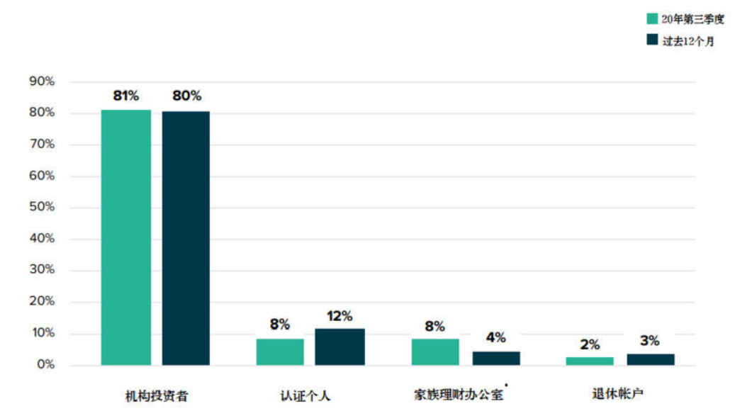 显然,灰度设计这些产品的目的,不是为了卖给小型散户,它的目标对象是“合格投资者”,是指那些财产净值100万美元以上或两年收入超过20万美元的个人,以及资产超过500万的机构投资者。灰度2020年Q3的报告显示,有90%的客户都是机构投资者。