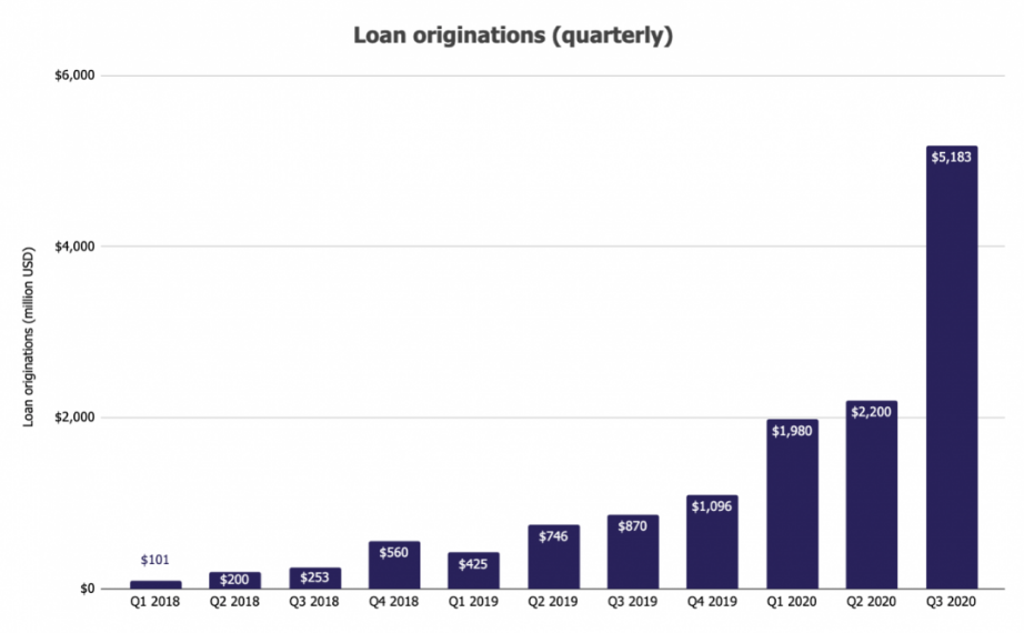 灰度的兄弟公司Genesis就提供这种借贷服务,下图是Genesis贷款服务的增长情况,2020年以来业务需求量飙升,Q3季度更是发放了52亿美元的贷款,很难说这样的增势与灰度完全无关。