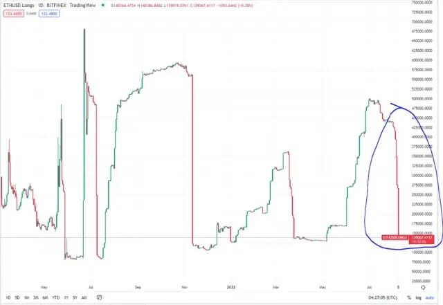 另外一个数据可以看到 Bitfinex 多头已降至低点。