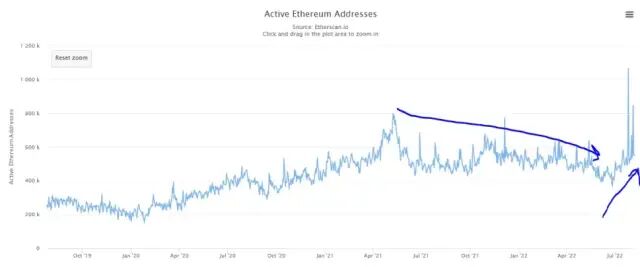自从去年 12 月份以来,以太坊价格已经经历大幅下降,但六月下旬以来活跃用户已经出现了稳定的上升趋势。