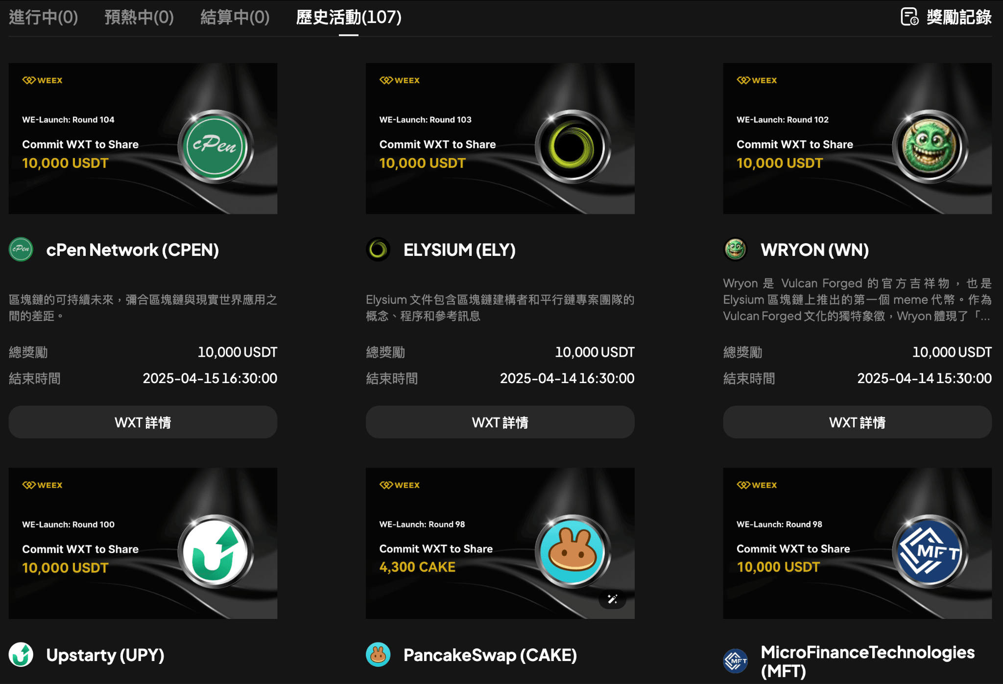 自 2024 年 6 月 19 日以来,截至 2025 年 4 月 15 日,WEEX 已累计上线 107 个 WE-Launch 项目,平均每周 2.5 个项目。参与 WE-Launch 的累计资产达 1,152,786,124 WXT。回报率 Top 5 WE-Launch 项目如下: