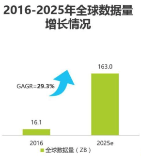 现在的中国人平均每周上网时间26.5小时;2016年至2025年,数据的总量增长将高达10倍;移动通信的5G时代马上来临,数据的传播将会更多更快了。这些对于数据传播和存储行业来说,将带来颠覆性的影响和改变。