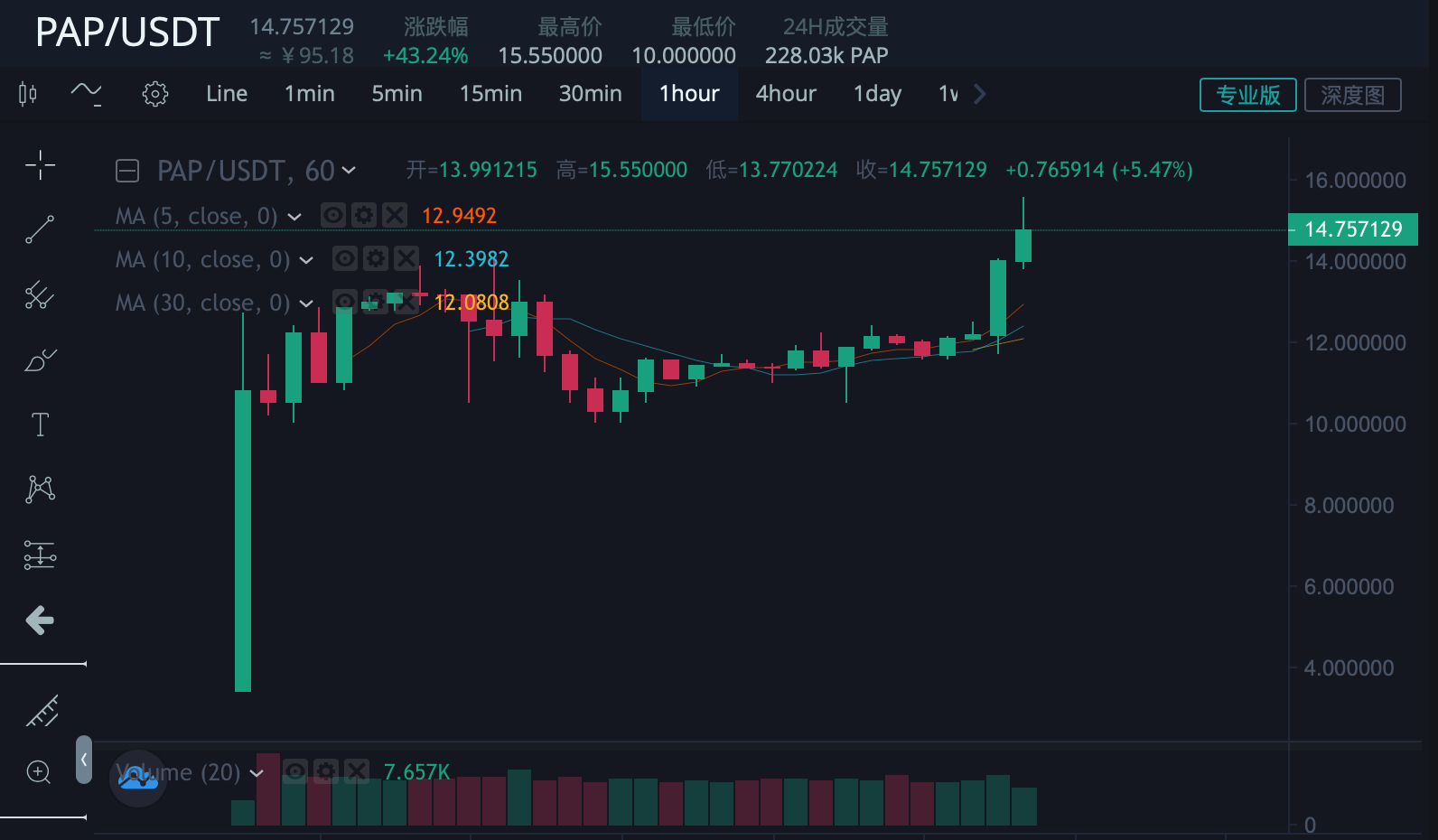 据WBF交易所数据监控播报,PAP于9月9日上线WBF交易所,上线价格3.4U,最高时锋价格14.05U,当日涨幅高达280%。