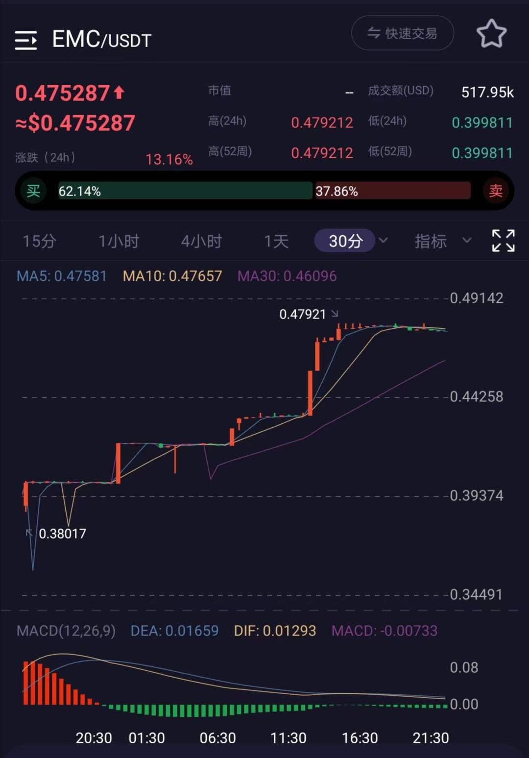 附:昨日EMC在币赢走势图