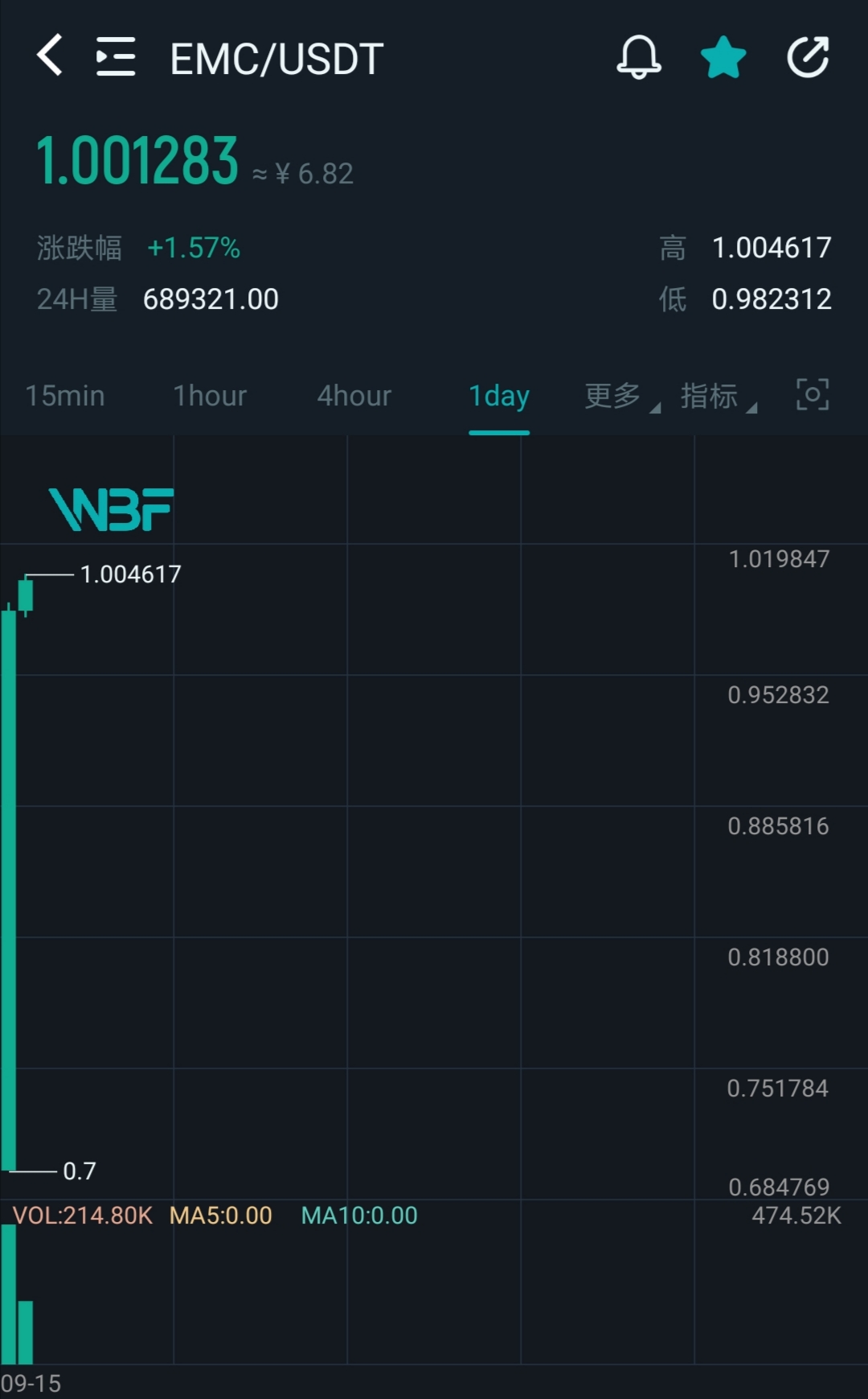 昨日,EMC上线WBF,24小时交易量68万美元,单价已突破1美元。