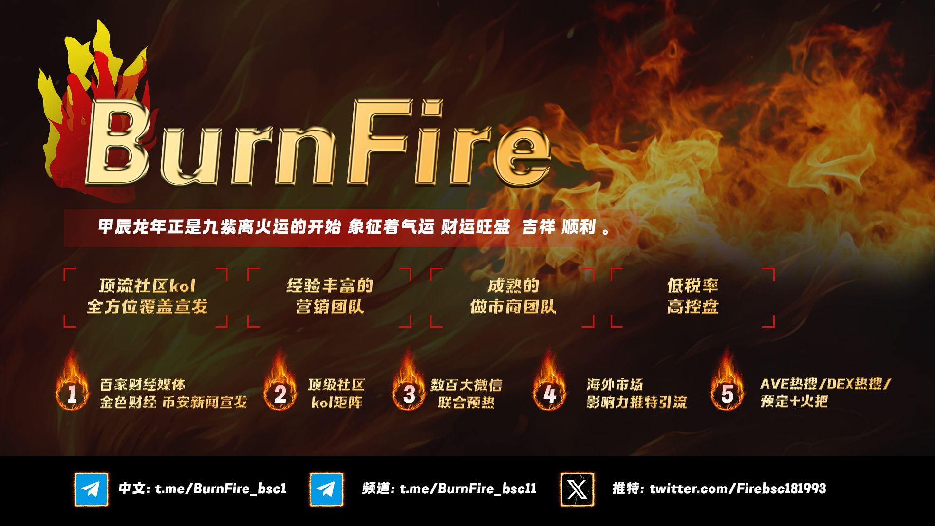 据悉 BurnFire代币 即将部署在BSC币安智能链(Pancakeswap)上20242月22日发布上线 该项目团队拥有者丰富的开发经验 已和众多知名顶级kol社区达成战略合作。